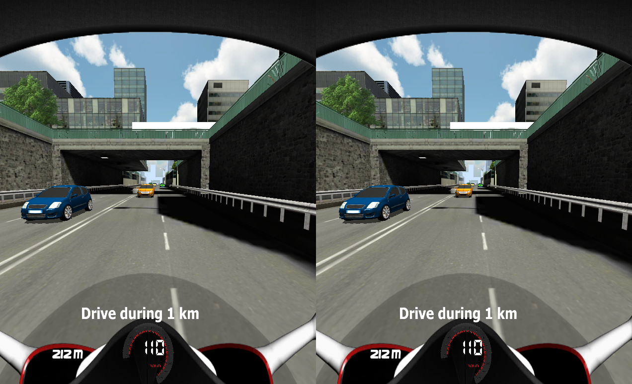| Additional info | ----->>> Use your google cardboard ! <<<----- This game is a virtual reality game for google cardboard ! Interface and navigation are optimized for this type of gameplay. You dream to drive fast or very fast on the highway? You like slalom, dodge through the traffic? VR Bike is for you ! |